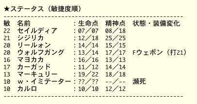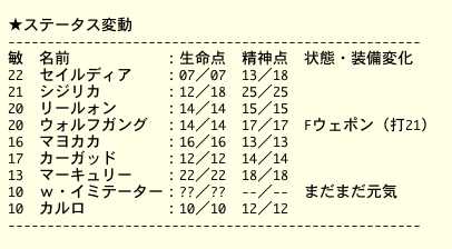 ウォルフとリールォン、シジリカは回避成功。(回16/回13/回16)